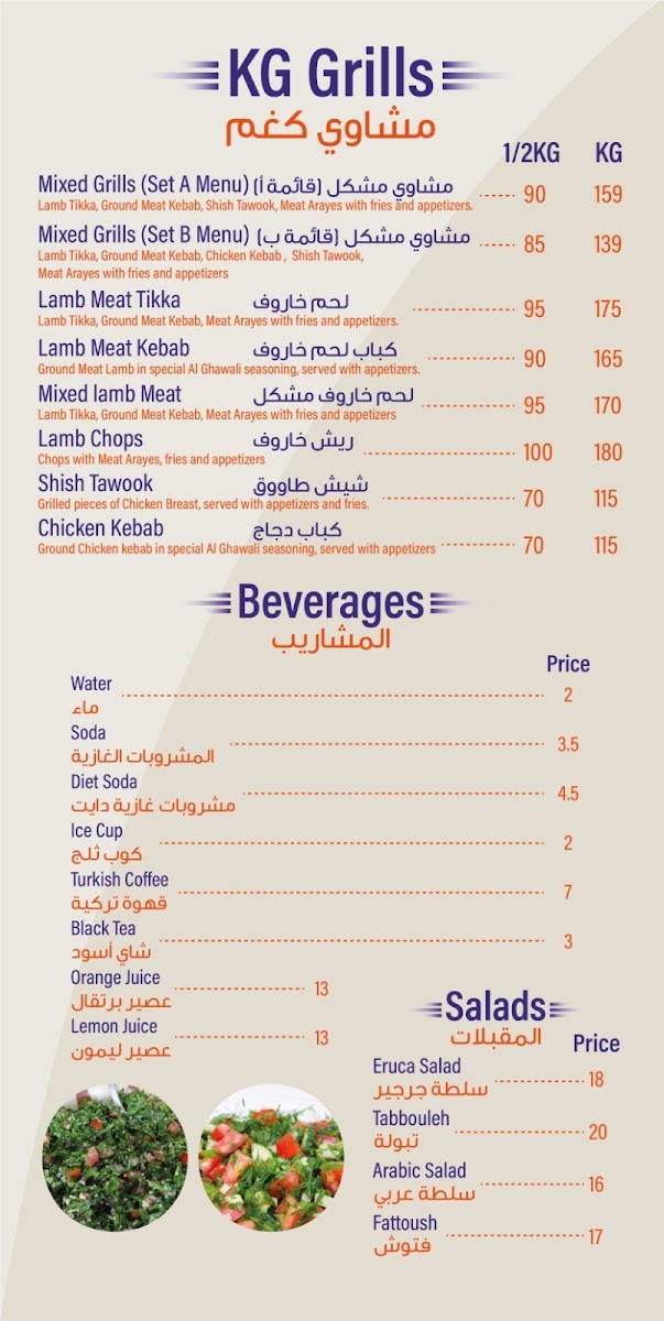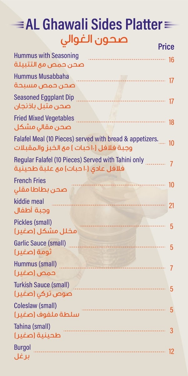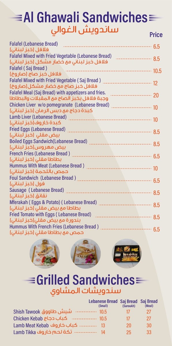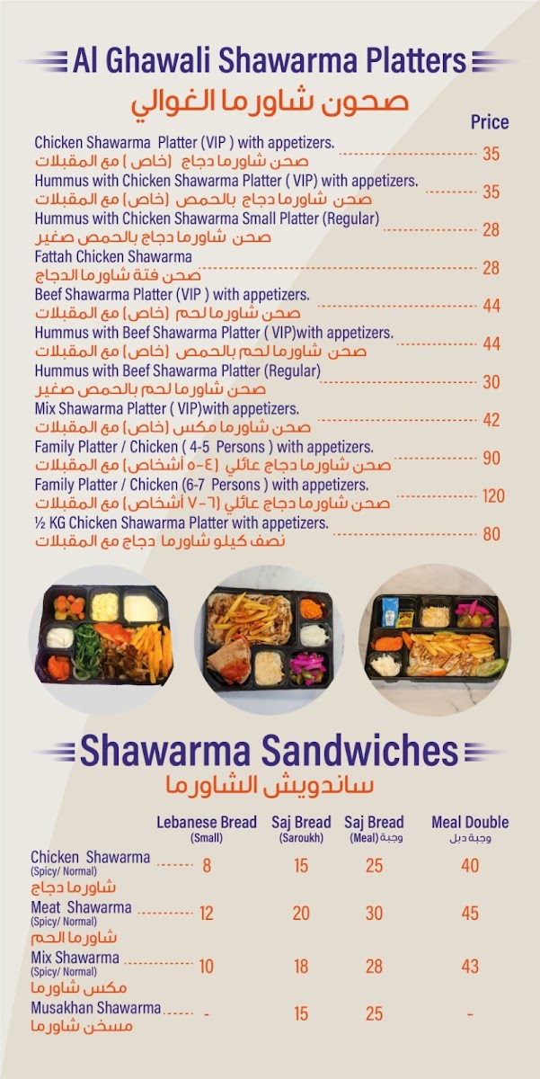 AL GHAWALI RESTAURANT مطعم الغوالي Menu